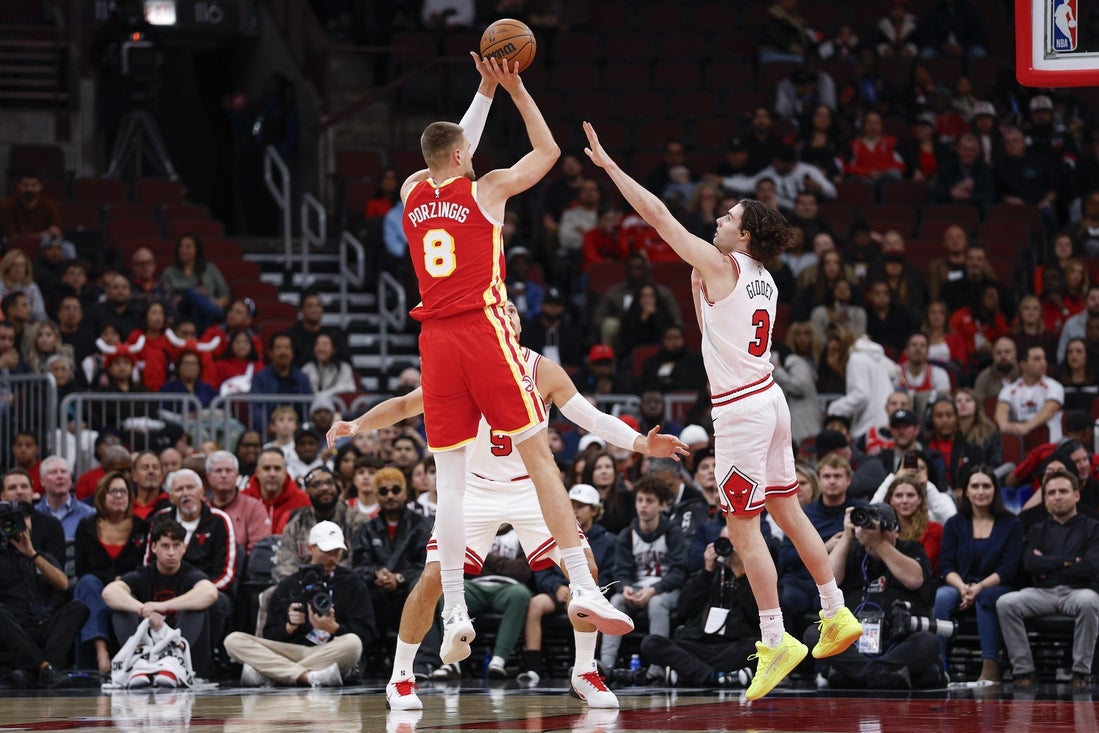 Atlanta led by as many as 13 points in the first quarter. The Hawks took an 11-point advantage on a Porzingis jumper with 3:28 left before the break, but the Bulls closed the second quarter on a 14-4 run to pull within a point at halftime.