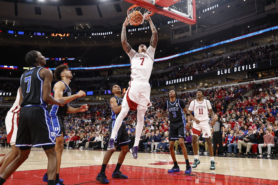 Freshman forward Cameron Boozer scored 35 points to match his career high and he had enough help down the stretch as No. 4 Duke beat No. 22 Arkansas 80-71 on Thursday night in Chicago.