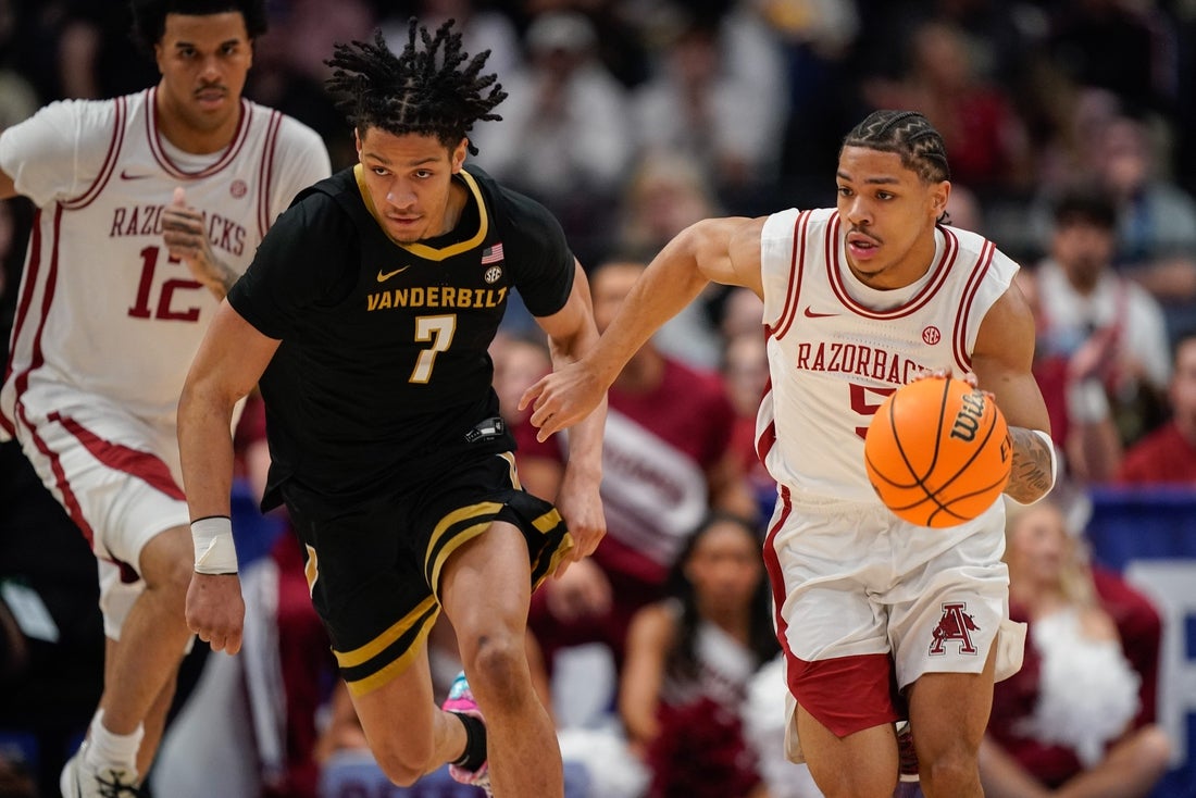 Acuff was dominant in the Razorbacks’ three-game run to their second SEC title, their first since 2000. The SEC Player of the Year scored 30 points with five 3-pointers and 11 assists in the 86-75 title game victory over Vanderbilt. It was Arkansas’ second win over the Commodores this season.