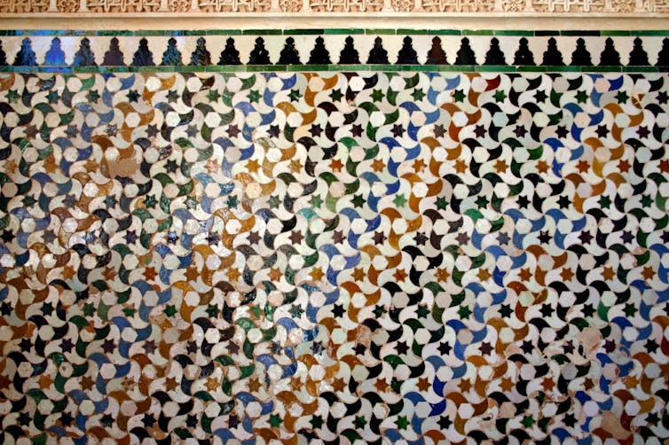 An emotional experience? Very much so. But what’s fascinating about such Islamic tilings is that the work of anonymous artists and craftsmen also displays a near-perfect mastery of mathematical logic. Mathematicians have identified 17 types of symmetry: bilateral symmetry, rotational symmetry and so forth. At least 16 appear in the tilework of the Alhambra, almost as if they were textbook diagrams.
