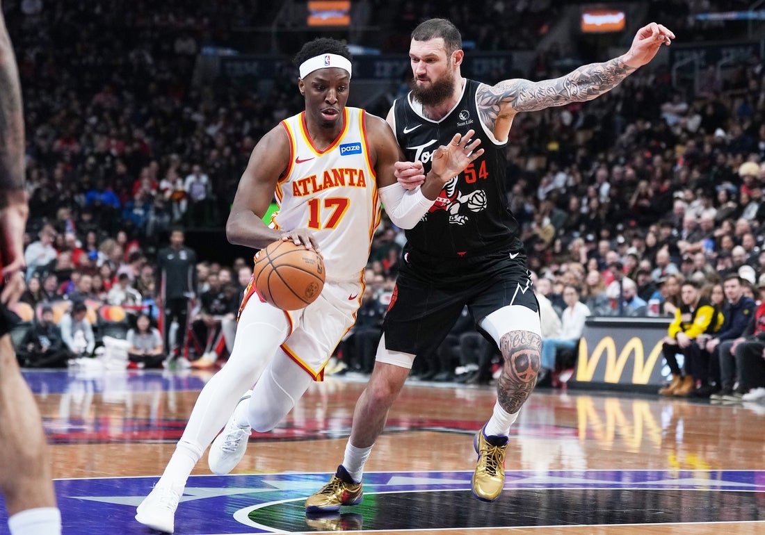 Atlanta chipped away and trailed by one after Zaccharie Risacher’s dunk with 6:56 to play in a loosely played second quarter. Toronto answered with a 7-0 run.
