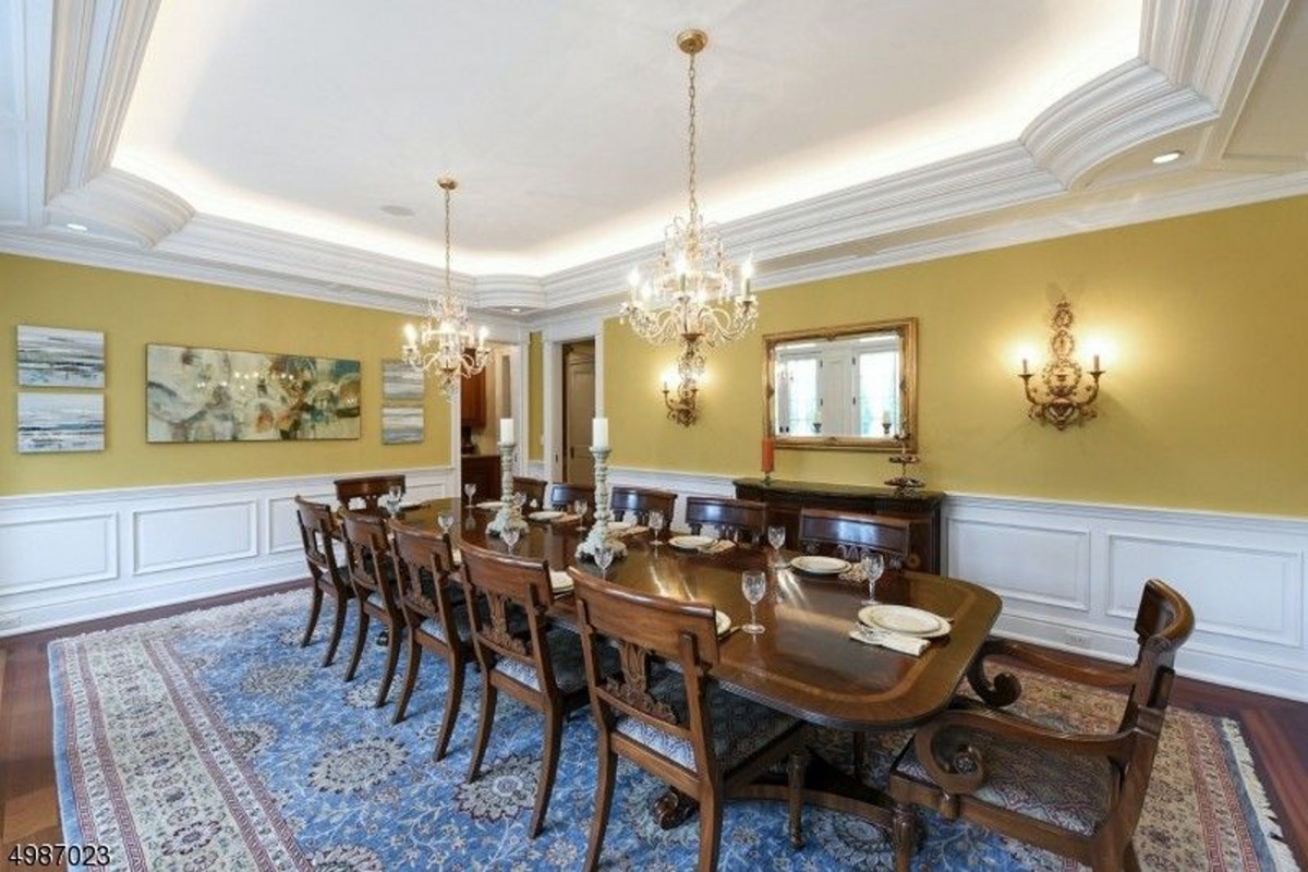 Entry via wood double doorways leads onto {custom} marble flooring to the domed lobby. The house has Brazilian cherry hardwood flooring, custom crown moldings and a floating cherry wood spiral staircase piercing via the home in keeping with the New Jersey Luxurious Actual Property Group itemizing all the cool stuff.