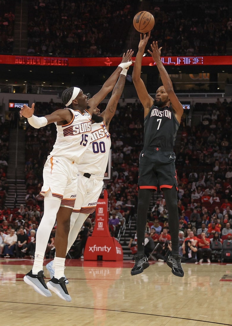 Durant added 10 rebounds and four assists to his ledger, while Amen Thompson chipped in 17 points, seven rebounds and six assists. The Rockets shot just 9-for-37 from behind the arc (24.3%).