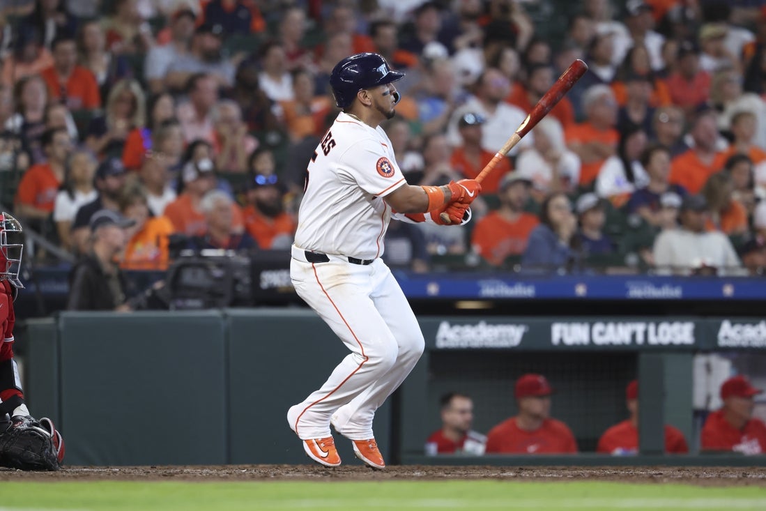The Astros seized a 4-0 lead in the second against Angels right-hander Jack Kochanowicz when Christian Vazquez slapped a two-run single to right field before Alvarez followed two batters later with a single to right that plated Smith. Vazquez scored when Paredes reached on a throwing error by Angels third baseman Yoan Moncada.