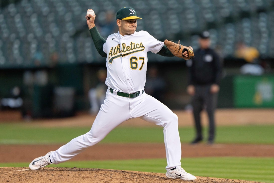 He has made seven major league appearances: six for the Oakland Athletics (2023) and one last year for the Tampa Bay Rays. He’s given up eight runs with five strikeouts and seven walks in 6 2/3 innings at the MLB level.
