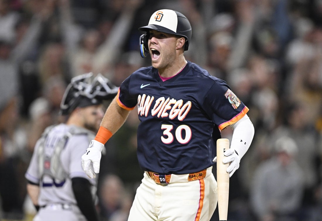 Although the batting averages don’t reflect it, the Padres have gotten contributions throughout the lineup. Luis Campusano doubled and homered Friday night, while newcomers Miguel Andujar and Nick Castellanos have supplied key hits.