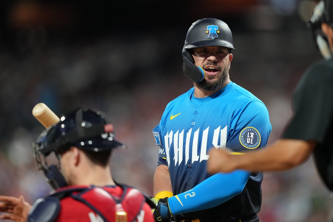 That escape set the stage for the Phillies’ tying rally in the bottom of the fourth. Schwarber led off with a walk and advanced when Harper bunted for a hit. Two batters later, Brandon Marsh hooked a single into right-center field to draw the hosts even.
