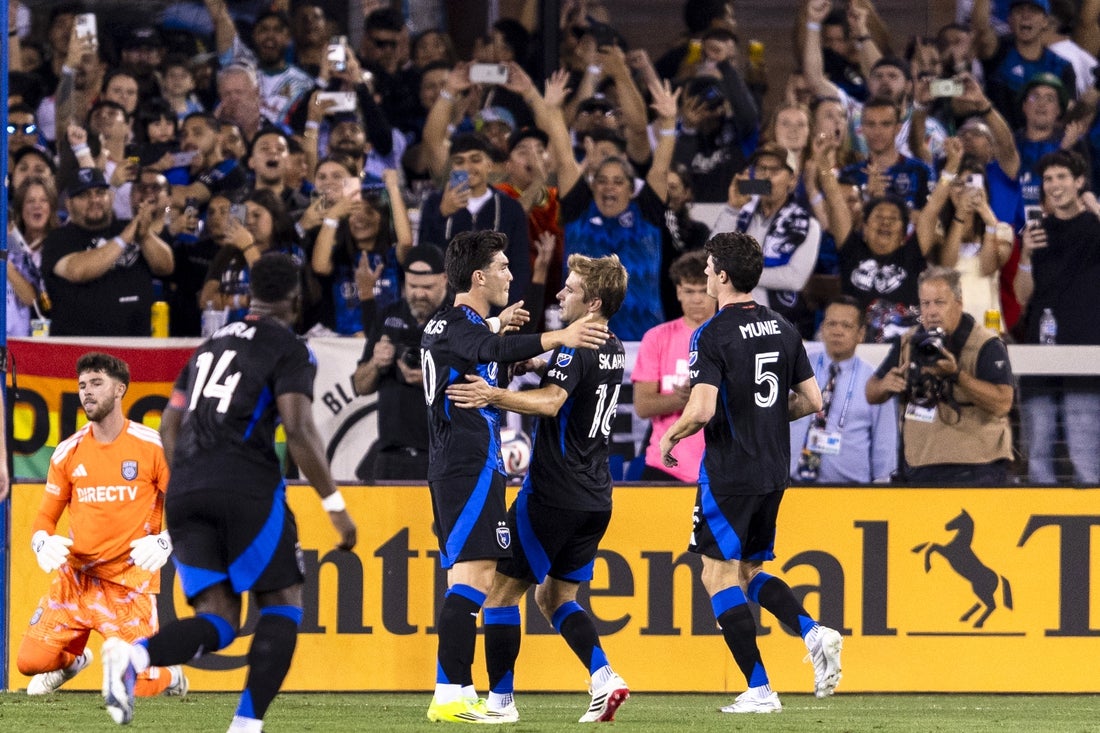 Niko Tsakiris scored his second and third career MLS goals and the San Jose Earthquakes eased to a 3-0 victory over 10-man San Diego FC Saturday night to continue their best-ever start in club history.