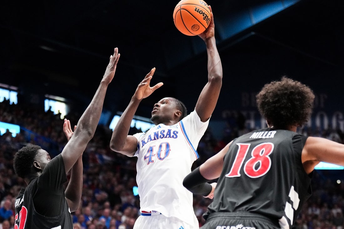 Flory Bidunga led Kansas (20-7, 10-4) with a double-double of 18 points and 12 rebounds.