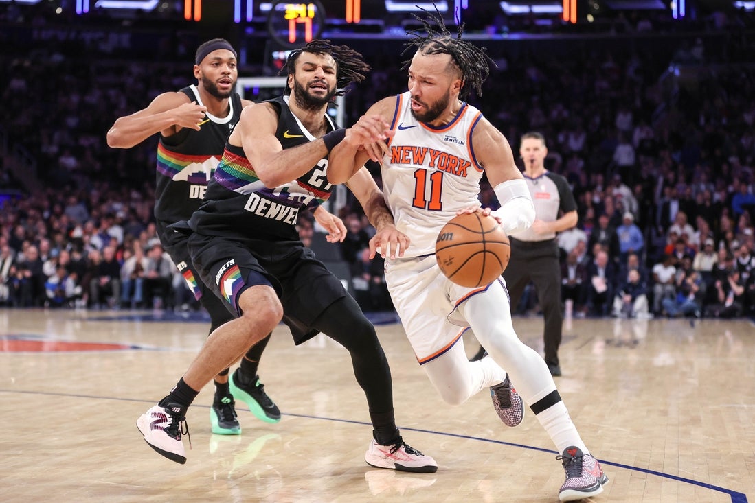 Brunson’s heroics wouldn’t have been needed if not for a controversial foul call. The Knicks appeared to clinch a 119-117 win in the first overtime when Jamal Murray missed a potential game-winning 3-pointer, but Mikal Bridges was called for a foul on Christian Braun away from the ball with 0.3 seconds left. Braun hit both free throws to send it double OT.