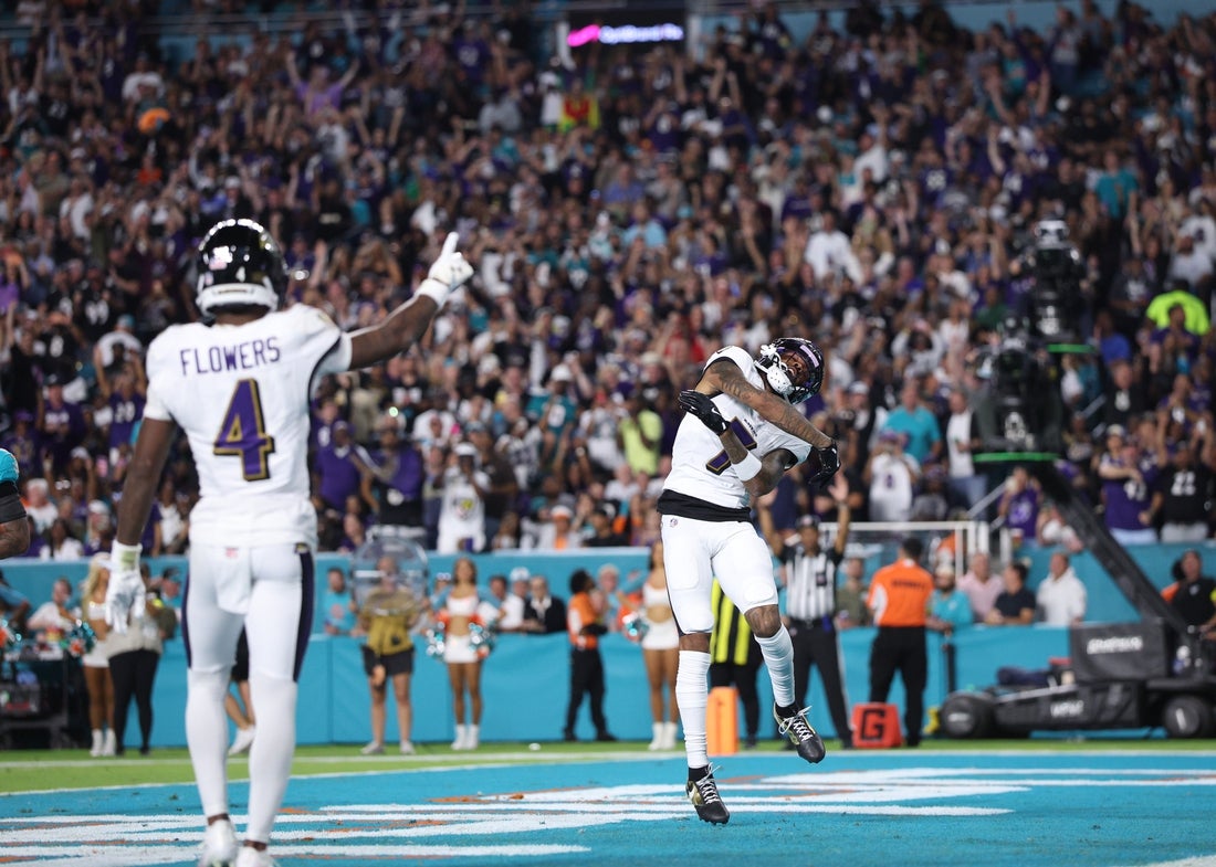 Ravens wide receiver Rashod Bateman has been fined $25,154 for comments made during Baltimore’s Thursday night 28-6 win over the Miami Dolphins a week ago, joining several NFL players in receiving fines from the NFL on Saturday.