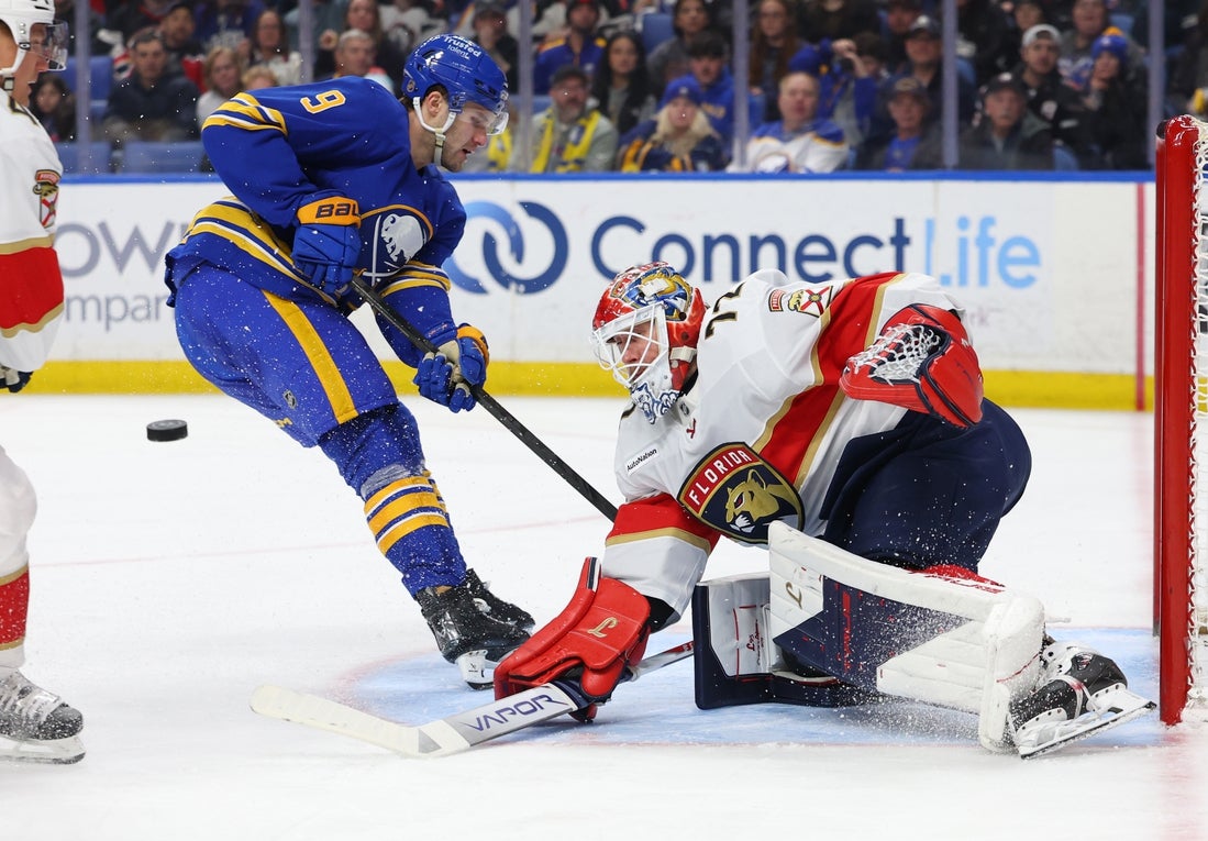 The Sabres, however, tied it again, this time with 2:03 remaining in the second period, when a net-front Benson muscled the puck off a Tage Thompson shot past Florida defenseman Aaron Ekblad and over the goal line.