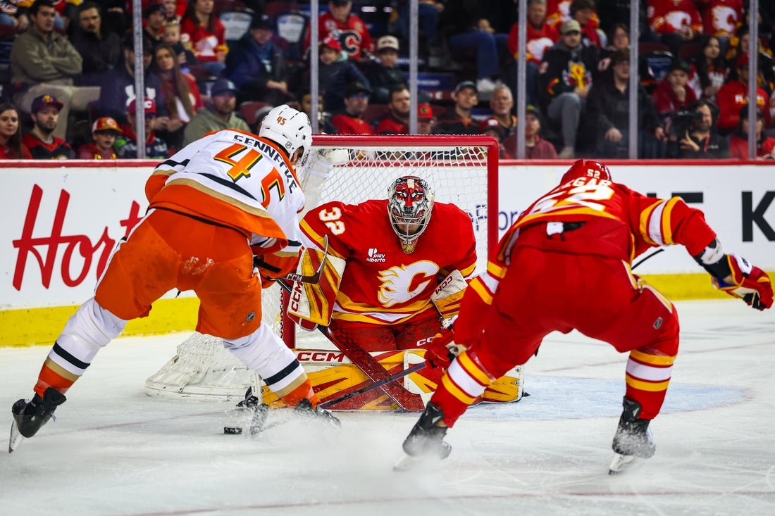 Calgary dominated the opening period — outshooting Anaheim by a 17-3 margin — and was rewarded with a two-goal lead.