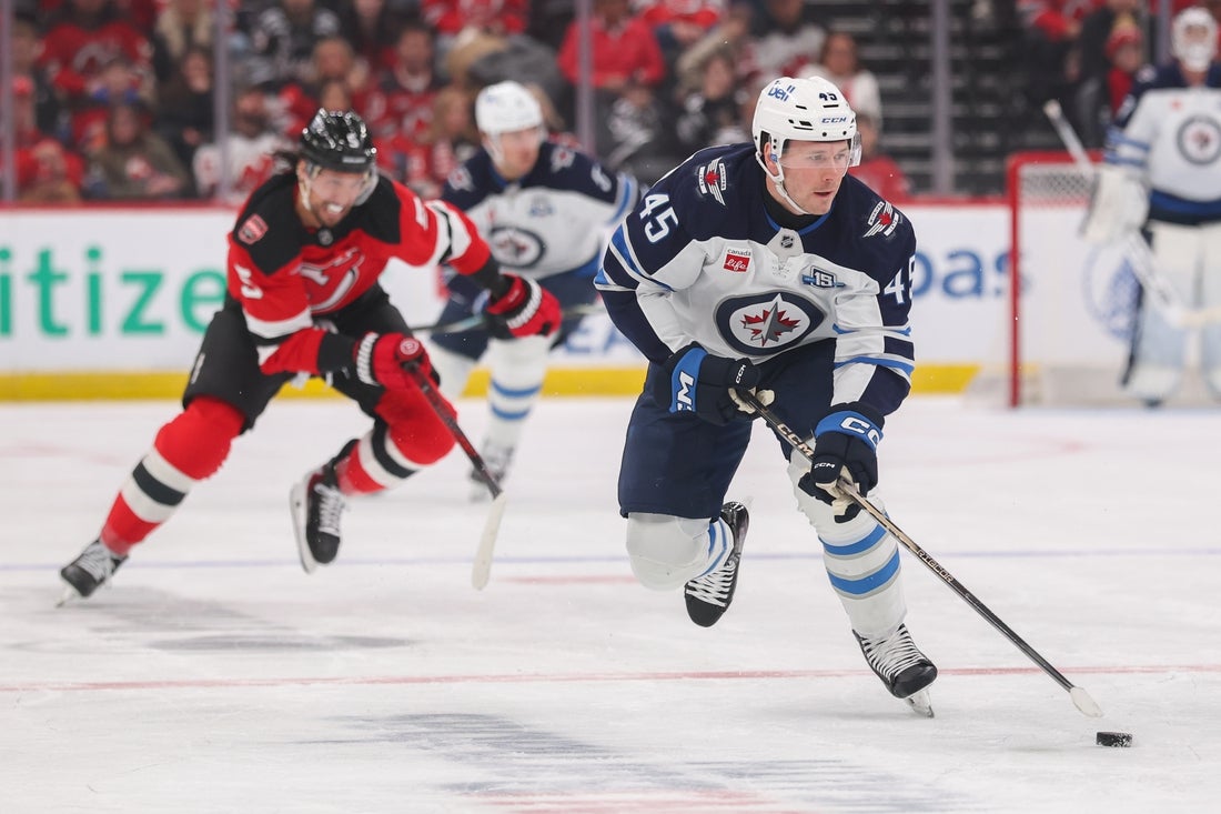 However, Winnipeg’s own careless passing allowed New Jersey to tie it at 8:02 of the first. The Devils’ Arseny Gritsyuk corralled the puck off a lazy collection attempt by the Jets’ Logan Stanley, then got it to Hameenaho, who broke free and beat Hellebuyck for his second career goal in his fifth game.