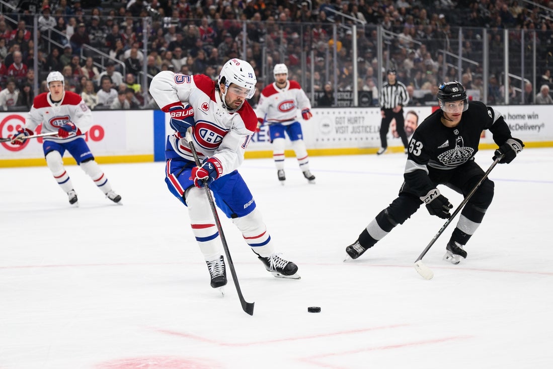 Juraj Slafkovsky had two goals and an assist for the visiting Montreal Canadiens in a 4-3 comeback win against the Los Angeles Kings on Saturday evening.