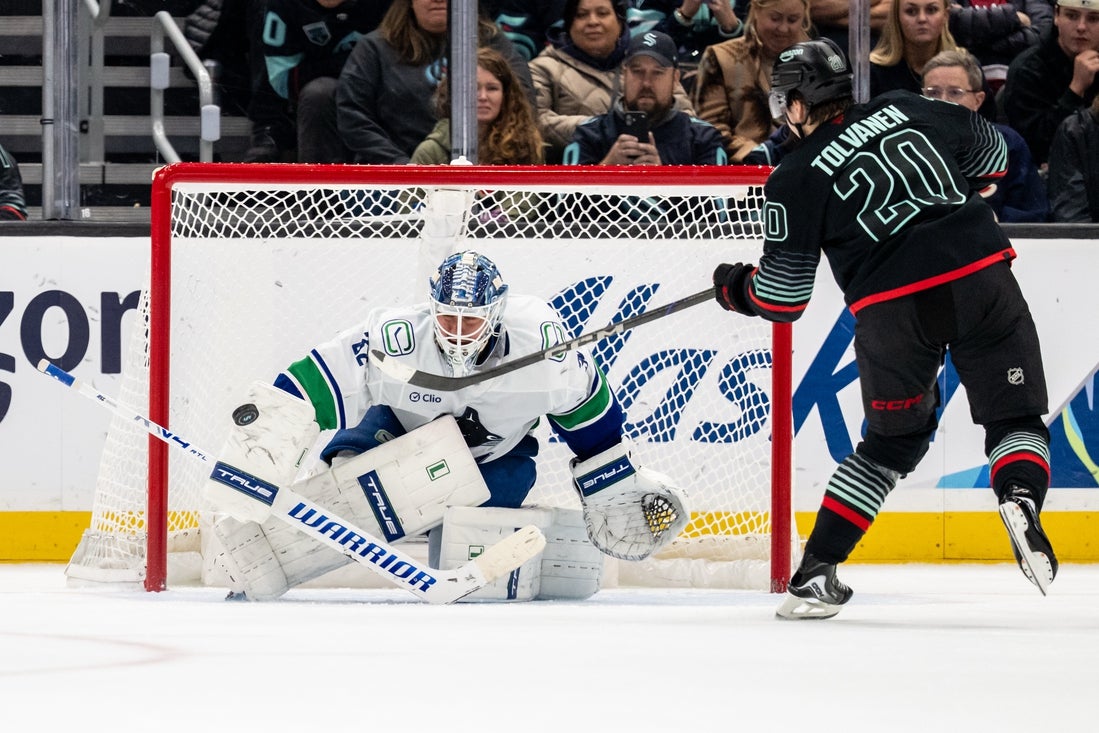 Goaltender Kevin Lankinen remained perfect in shootouts this season as the Vancouver Canucks defeated the host Seattle Kraken 3-2 on Monday night.
