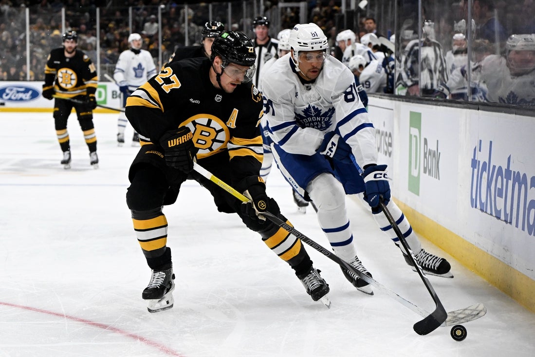 Toronto slimmed its deficit to one when Ekman-Larsson’s long shot sailed through traffic and past Swayman 3:32 into the third. Hildeby’s save on Morgan Geekie at the doorstep minutes later held that score until Pastrnak buried No. 401 off a Mark Kastelic feed on a power play at 9:48.