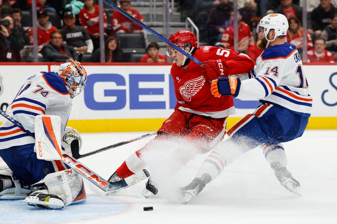 The Oilers cut Detroit’s lead to 3-2 at 7:33 of the third. Brett Kulak set up Draisaitl’s goal in front with a pass from the left circle.