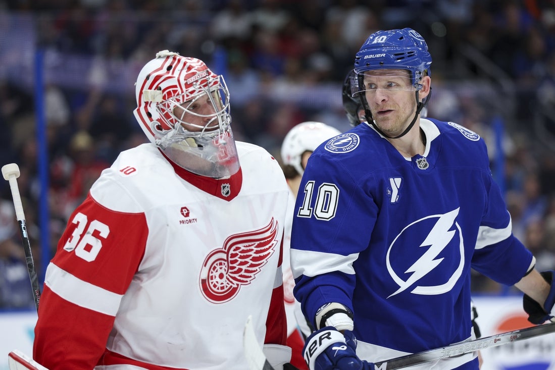 The shots were distributed evenly most of the first period, but the visitors went on the first power play at 16:14 when Detroit defenseman Justin Faulk was hooked by Kucherov.