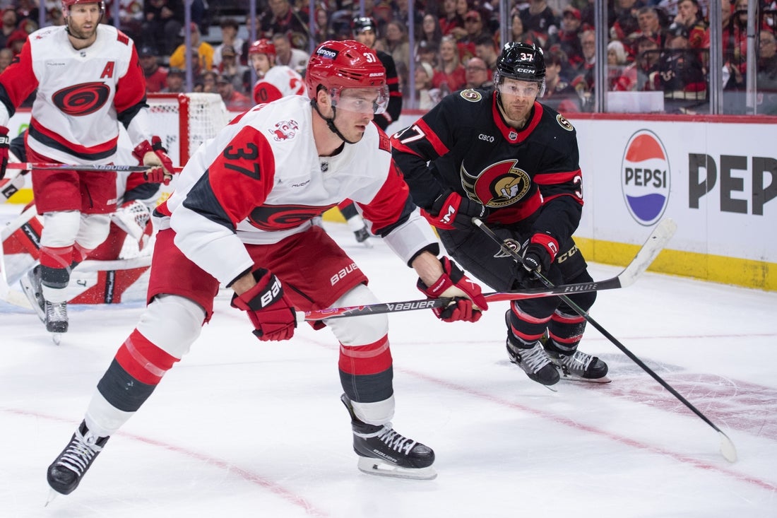 Logan Stankoven scored for the third straight game and the visiting Carolina Hurricanes put the Ottawa Senators on the brink of elimination with a 2-1 win in Game 3 of an Eastern Conference first-round playoff series on Thursday.