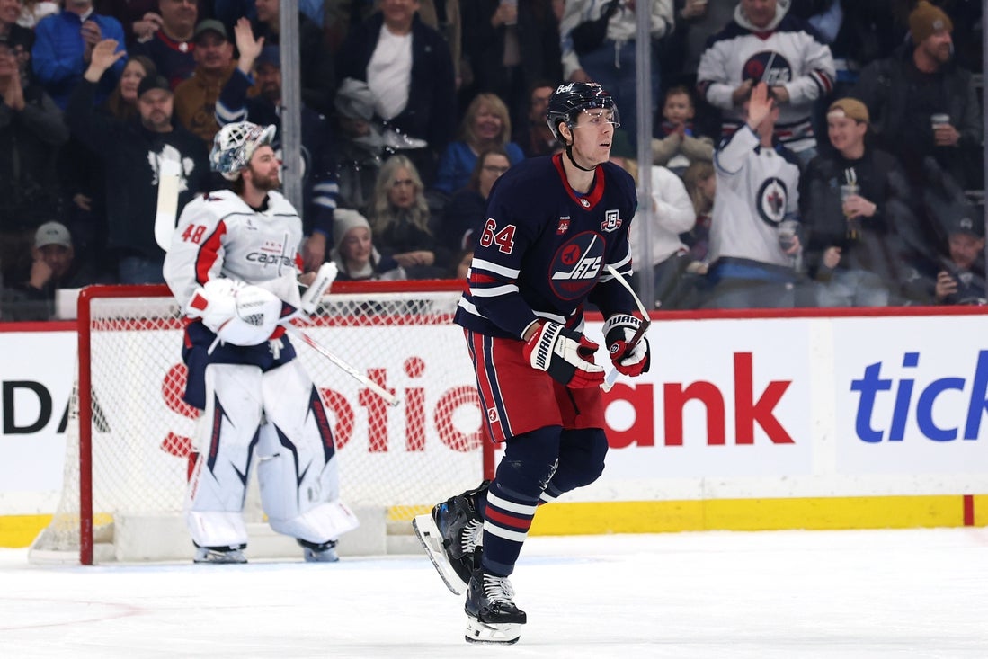 Vilardi has three goals in his past two games. Morgan Barron and Alex Iafallo scored in their second straight game and Iafallo added an assist for the Jets, who had lost three straight and five of six. Adam Lowry, Mark Scheifele, Kyle Connor and Josh Morrissey each had two assists.