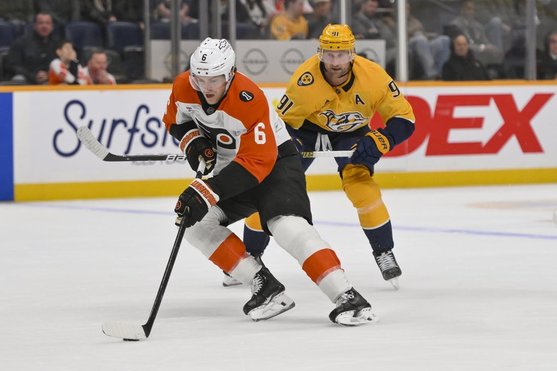 Matvei Michkov and Noah Cates scored second-period goals, leading the Philadelphia Flyers to a 3-1 win over the host Nashville Predators on Thursday night.