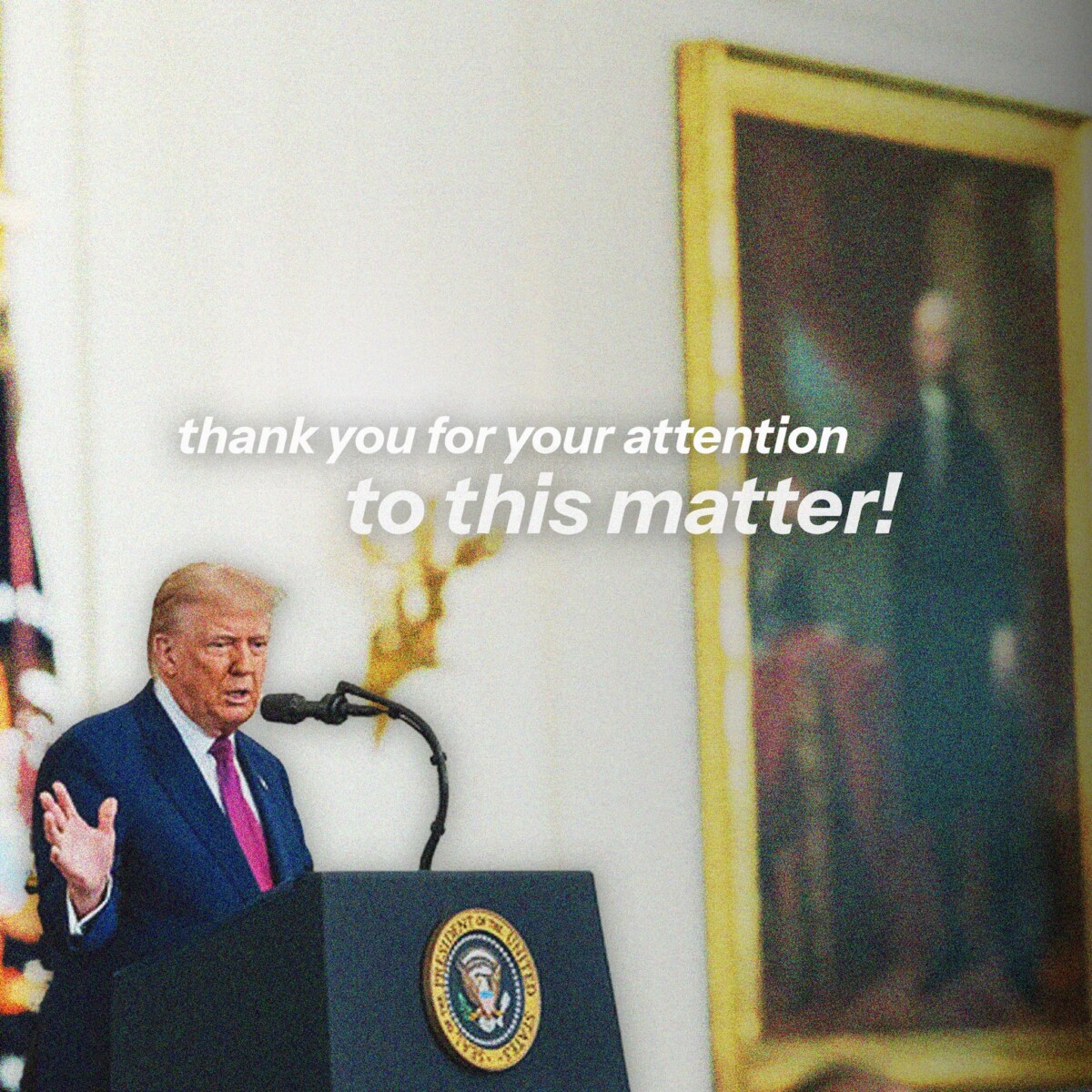 The series commenced with a gracious acknowledgment of public engagement, stating, “thank you for your attention to this matter!”—a phrase embodying both presidential gravitas and a sense of shared purpose. This set the tone for a visual discourse that was both personal and profoundly national.