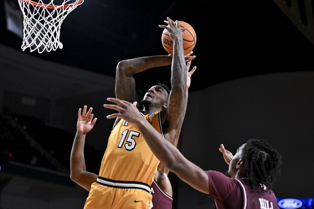 Texas A&M reassumed the front of Zach Clemence’s jumper with 1:35 remaining. After both teams had empty possessions, Mark Mitchell passed toward the rim for Phillips, and the resulting alley-oop dunk put Missouri ahead by a point with 17 seconds to play.