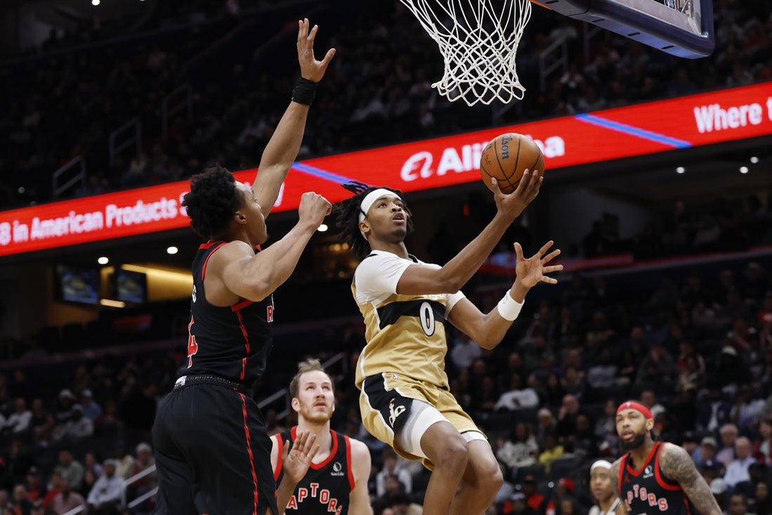 Washington built a 33-20 lead as Anthony Gill’s hook shot stamped a 7-0 run with 1:40 left in the first quarter. Ja’Kobe Walter’s 3-pointer cut the Raptors’ deficit to eight entering the second quarter.