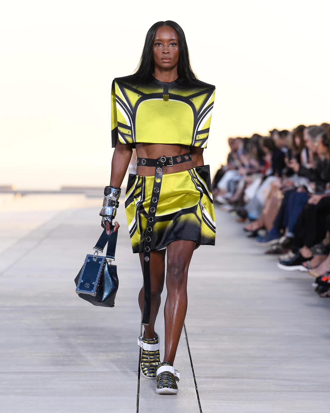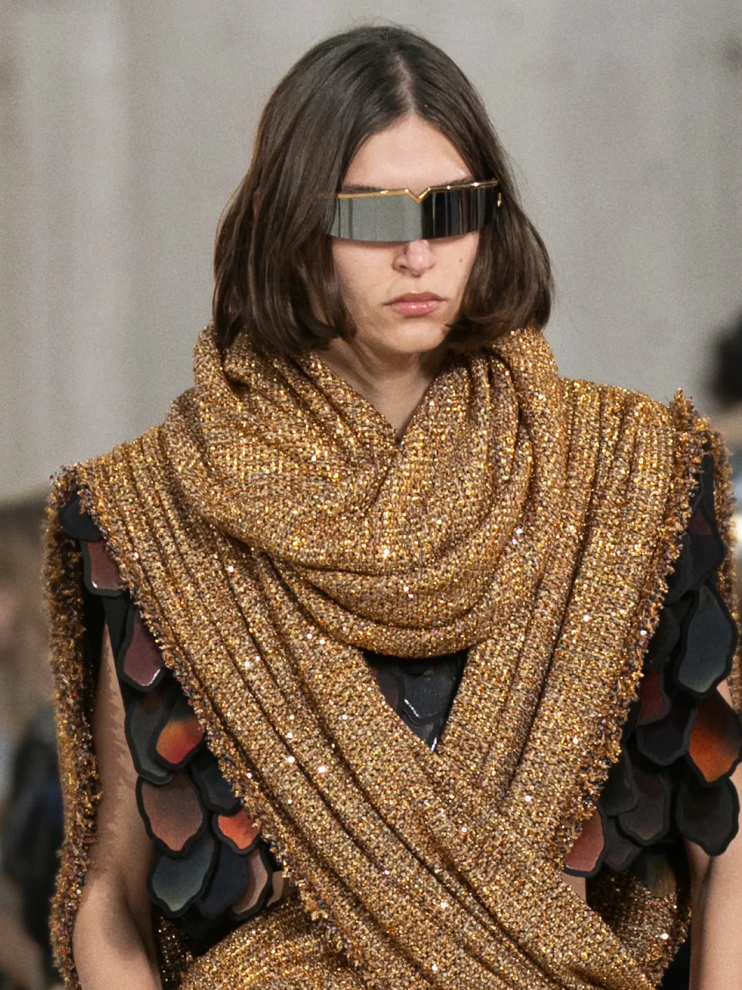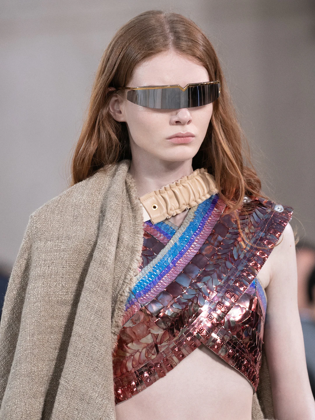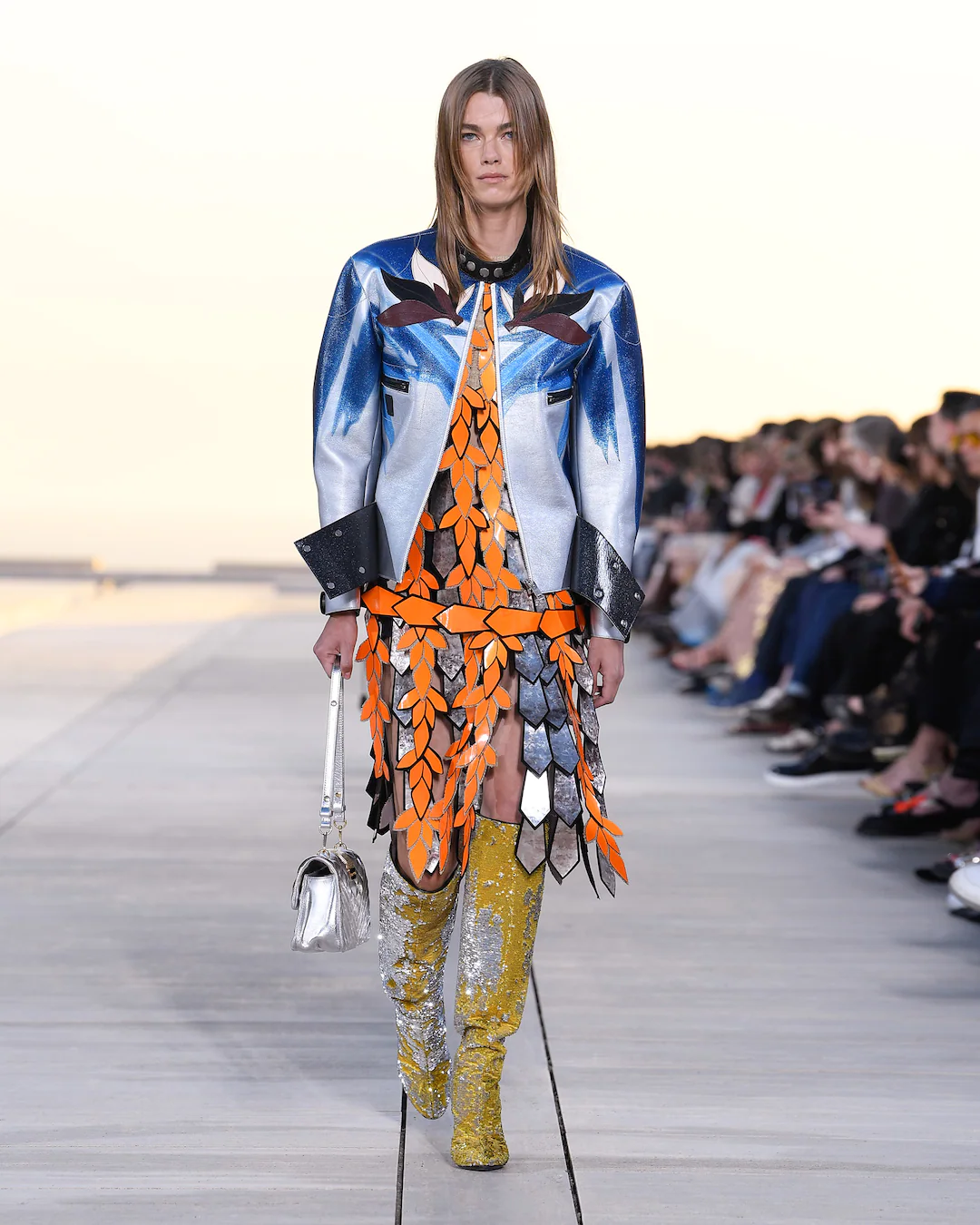 Ghesquière is known for his obsession with sci-fi and the future. However, although the materials used in this particular collection were unique, it was difficult to gauge whether the materials were reminiscent of a long gone past or a much anticipated future. The materials under the sun’s rays sometimes looked like crystals instead of fabrics.