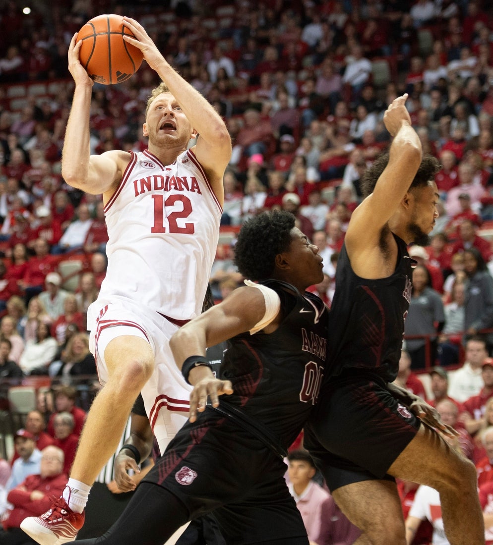 Redshirt senior Tucker DeVries made his Indiana debut on Nov. 5 by scoring his 2,000th career point in a 98-51 rout of outmatched Alabama A&M. The former two-time Missouri Valley Conference Player of the Year while at Drake showed why he won the award named for Larry Bird by canning 6 of 9 3-pointers against Marquette.