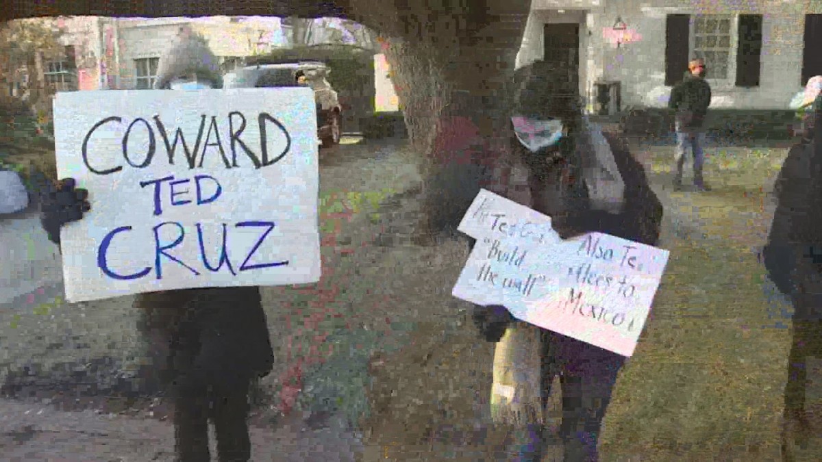 After coming back from Mexico and leaving stranded Texans and his dog behind angry protesters from the Houston United Front Against Fascism group gathered outside his home in Houston calling on the ‘traitor’ to resign.