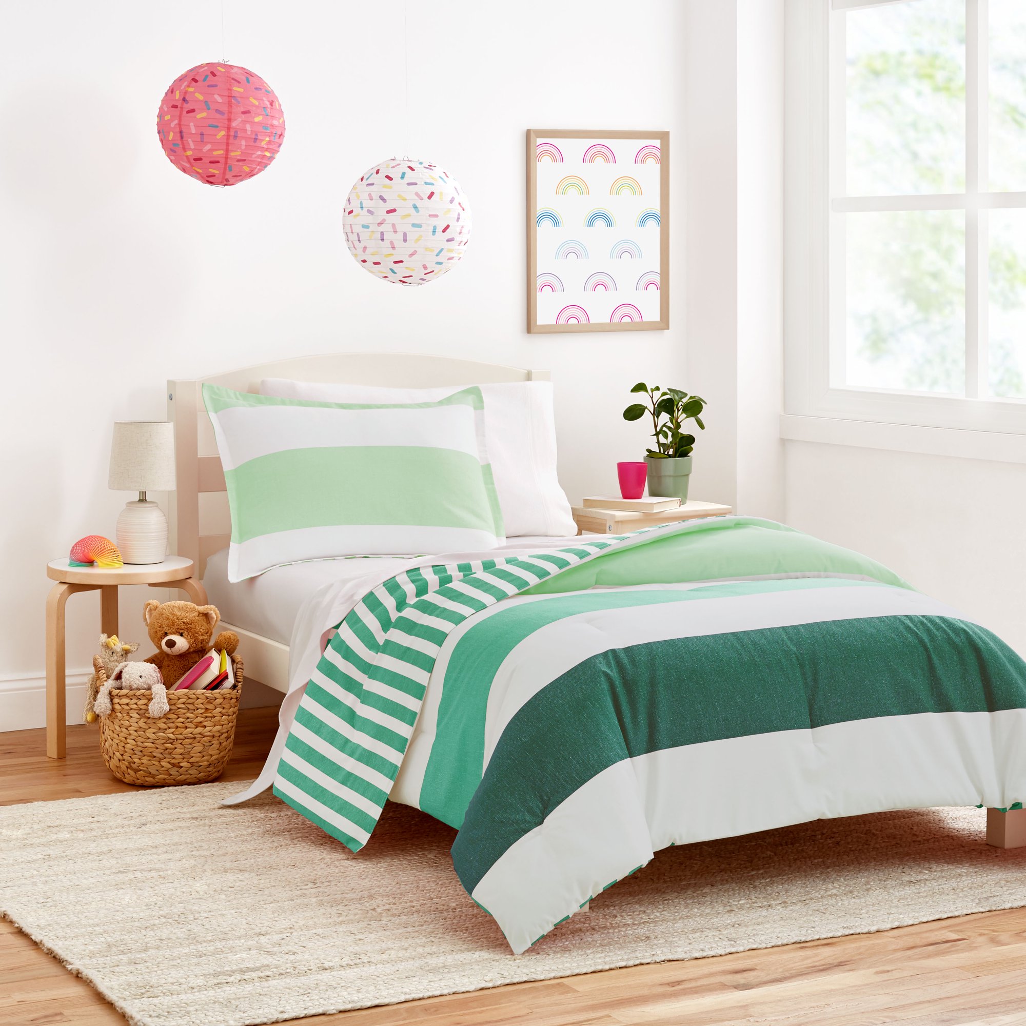 Cozy comforters that have complementary sheets sets are available in organic cotton from $44.98 to $49.98 while the Ombre Star Sheet Set is available from $29.98 to $39.98.